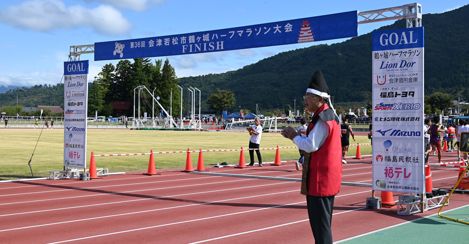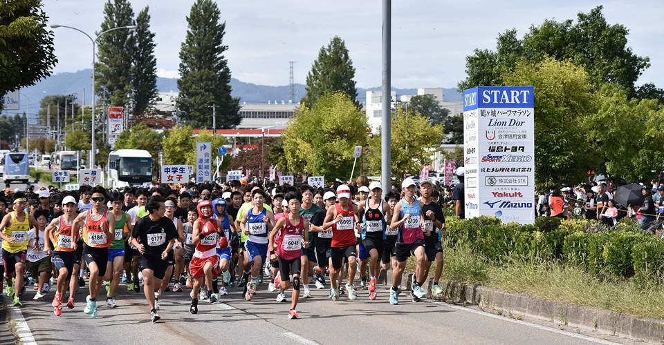 | ▶主 催 福島陸上競技協会 会津若松市鶴ケ城ハーフマラソン大会実行委員会 ▶共 催 会津若松市/会津若松市教育委員会/株式会社福島民報社/福島テレビ株式会社/会津陸上競技協会/会津若松市体育協会/会津若松市地区体育連盟/会津若松市スポーツ推進委員会/一般財団法人会津若松市公園緑地協会/会津若松市立小中学校長協議会 |